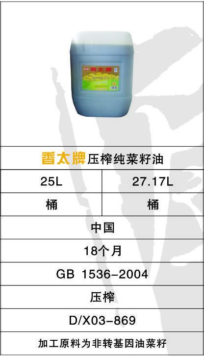 下一篇: 香太牌小榨特香菜籽油